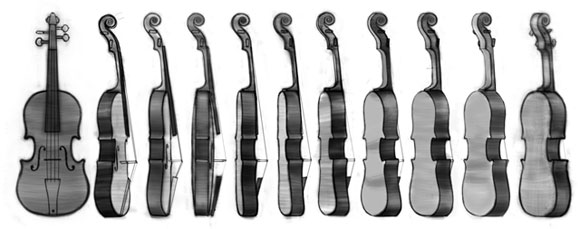 I also prepared a turnaround template for the violin which I later used to replace the rough drawings of the instrument as it turned in perspective with Herbert's right hand.
