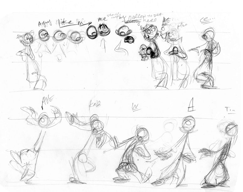 I do recall many crazy late nights. I mean people just get plain 'ol silly at 3 in the morning. That was my first introduction to the music of Stephen Sondheim, and if you know who he is, you know that you really have to pay attention to the lyrics of his songs to get anything out of them. So between concentrating on animation and complicated song lyrics all at 3 in the morning, well, you can imagine I wasn't very productive in school. Nowadays I wouldn't even think of creating a bunch of distractions when trying to plan out important animation.