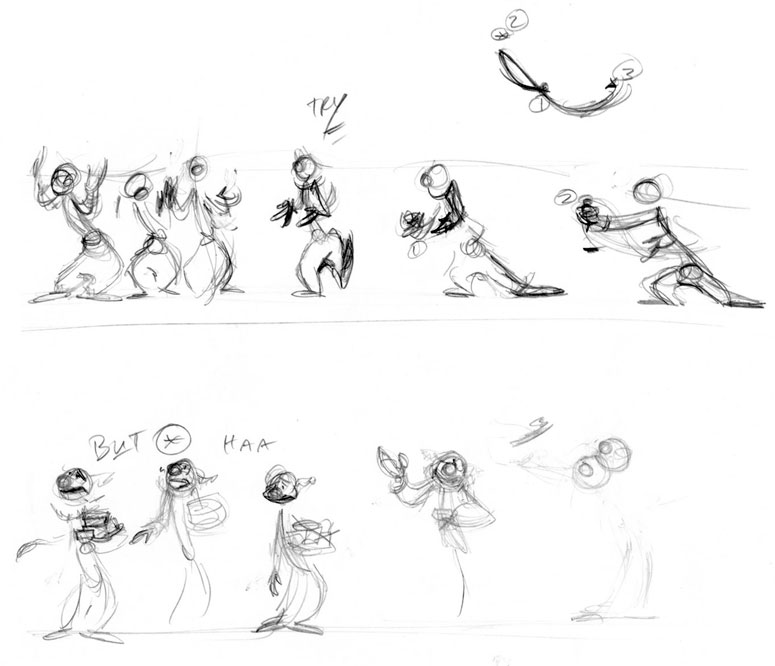 All of the clown's gestures have super-appealing arcs. Talk a bit about how you think about arcs in your animation.